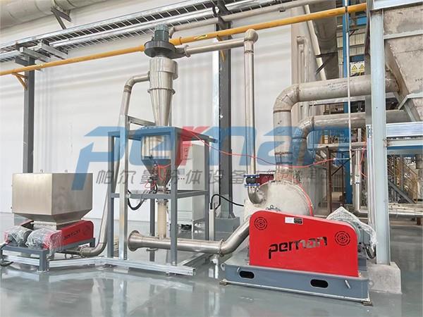 催化劑物料由加料系統均勻的送入粉碎室受到高速旋轉的粉碎盤的強烈沖擊,同時受到離心力的作用,與粉碎齒圈發生碰撞,受到剪切、摩擦、碰撞等多種綜合力的作用,使物料粉碎,被粉碎的物料隨氣流運動到分級區,通過變頻調節的分級輪,對粗細物料進行分離,符合細度要求的產品隨氣流進入旋風收集器和除塵器收集,粗物料返回分級區二次粉碎。