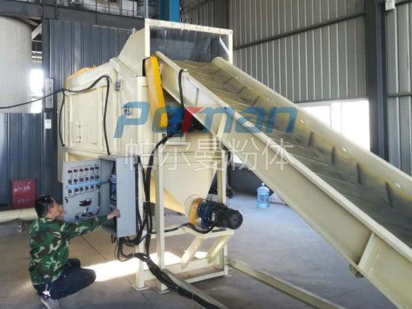 生產原材料會在皮帶輸送的作用進行進入到無塵拆包機中進行拆包作業,分離出的散料會在出料口直接進入到管鏈輸送機設備入料口中進行傳輸作業。