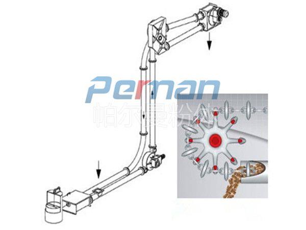 3、物料沿著管子平滑輸送,物料破損少,緩慢的彎道輸送使很少的物料顆粒產生碎屑。