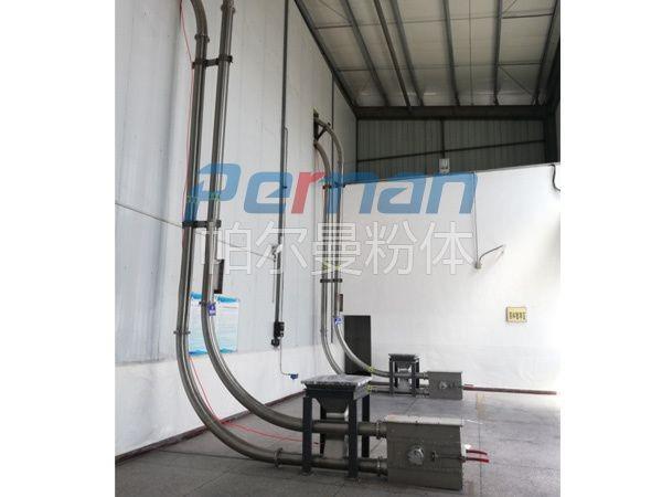 1、結(jié)構(gòu)緊湊,占用空間小,可以三維改變輸送方向,不受地形、角度與高度的影響;輸送過程在密閉的管路中進行,物料無污染,無粉塵飛揚;