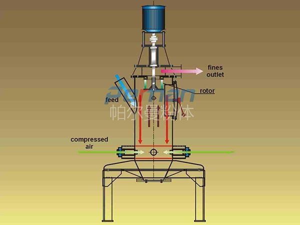 MQL流化床氣流粉碎機(jī)設(shè)備是一種經(jīng)壓縮空氣進(jìn)行冷凍、過(guò)濾在干燥之后利用噴嘴的作用形成的超音速氣流準(zhǔn)確的射入到粉碎室內(nèi),在氣流的作用下就能夠使物料呈現(xiàn)出流態(tài)化狀態(tài),并且被進(jìn)行加速運(yùn)動(dòng)處理加速后的物料會(huì)在多個(gè)噴嘴的噴射氣流的交匯點(diǎn)處進(jìn)行匯合。物料匯合后就會(huì)因?yàn)楦咚贇饬鞯淖饔枚嗷ヅ鲎踩缓竽Σ敛粩嗟倪M(jìn)行粉碎作用,循環(huán)處理之后就會(huì)達(dá)到超微超細(xì)粉碎的作用。