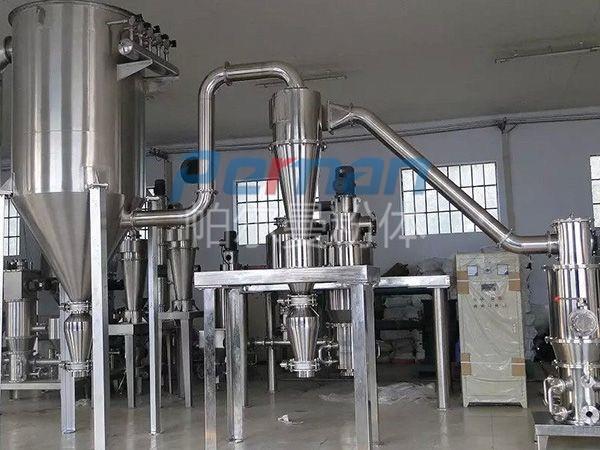 氣流粉碎機與旋風分離器、除塵器、引風機組成一整套粉碎系統。壓縮空氣經過濾干燥 后,通過拉瓦爾噴嘴高速噴射入粉碎腔,在多股高壓氣流的交匯點處物料 被反復碰撞、磨擦、剪切而粉碎,粉碎后的物料在風機抽力作用下隨上升氣流運動至分級區,在高速旋轉的分級渦輪產生的強大離…